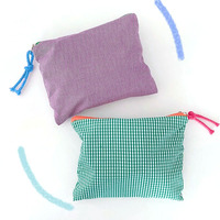 Công suất lớn tùy chỉnh phụ nữ dây kéo túi ví kẻ sọc trang điểm Túi du lịch ly hợp vải phong cách cổ điển Túi mỹ phẩm