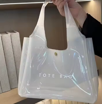 사용자 정의 홀로그램 클리어 레이저 Pvc 토트 가방 Pvc 비치 가방 손잡이 대형 투명 토트